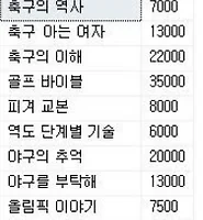 문제 1. 가격이 20,000원 미만인 도서를 검색하시오